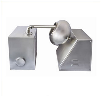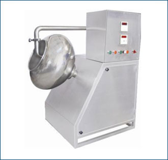 The Laboratory scale conventional costing machine is ideal for film and sugar coating. The machine is available with 12”, 14”,16”, 18” and 20” size of stainless steel coating pan. The machine is designed with fabricated structure fitted with SS enclosure and drive unit of motor and reduction gear box. Machine has variable speed drive to achieve 5 to 15 RPM by variable speed pulley. The machine is mounted on anti vibration pads which avoids foundation and vibration.